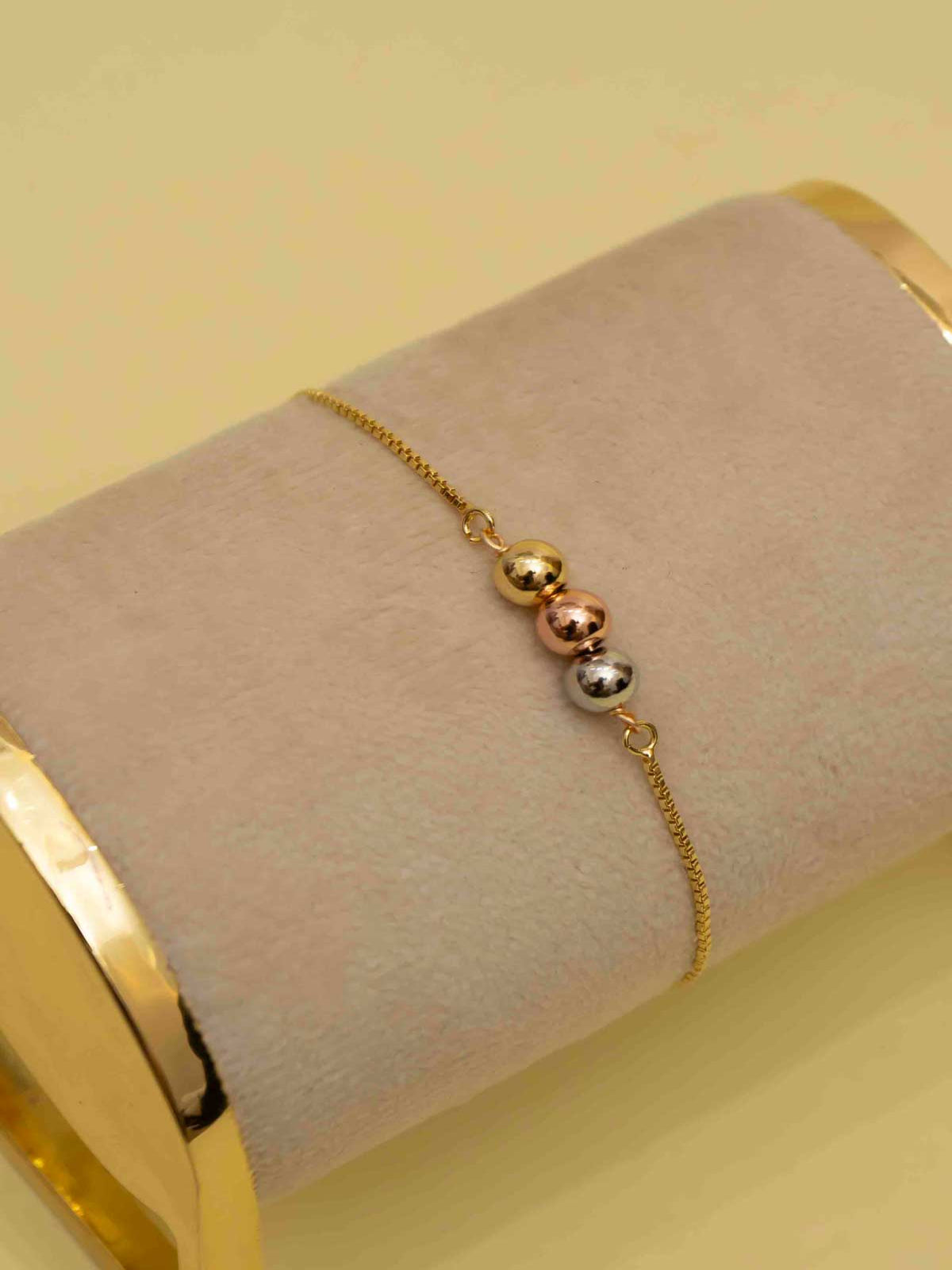 Pulsera de rodio con tres pepas, delicada y versátil. Un accesorio minimalista que aporta estilo y un toque sofisticado a cualquier outfit, ideal para el uso diario o como regalo especial.