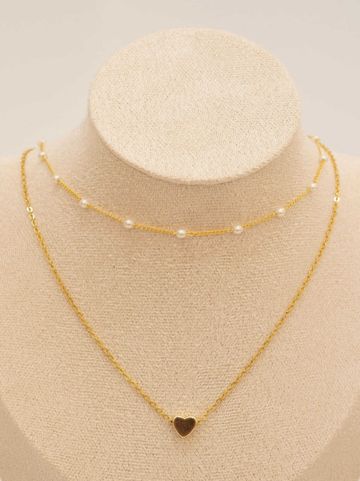 Sutil, romántica y delicada. Esta cadena doble con perlas de río naturales y corazón dorado es el reflejo perfecto de la elegancia minimalista.