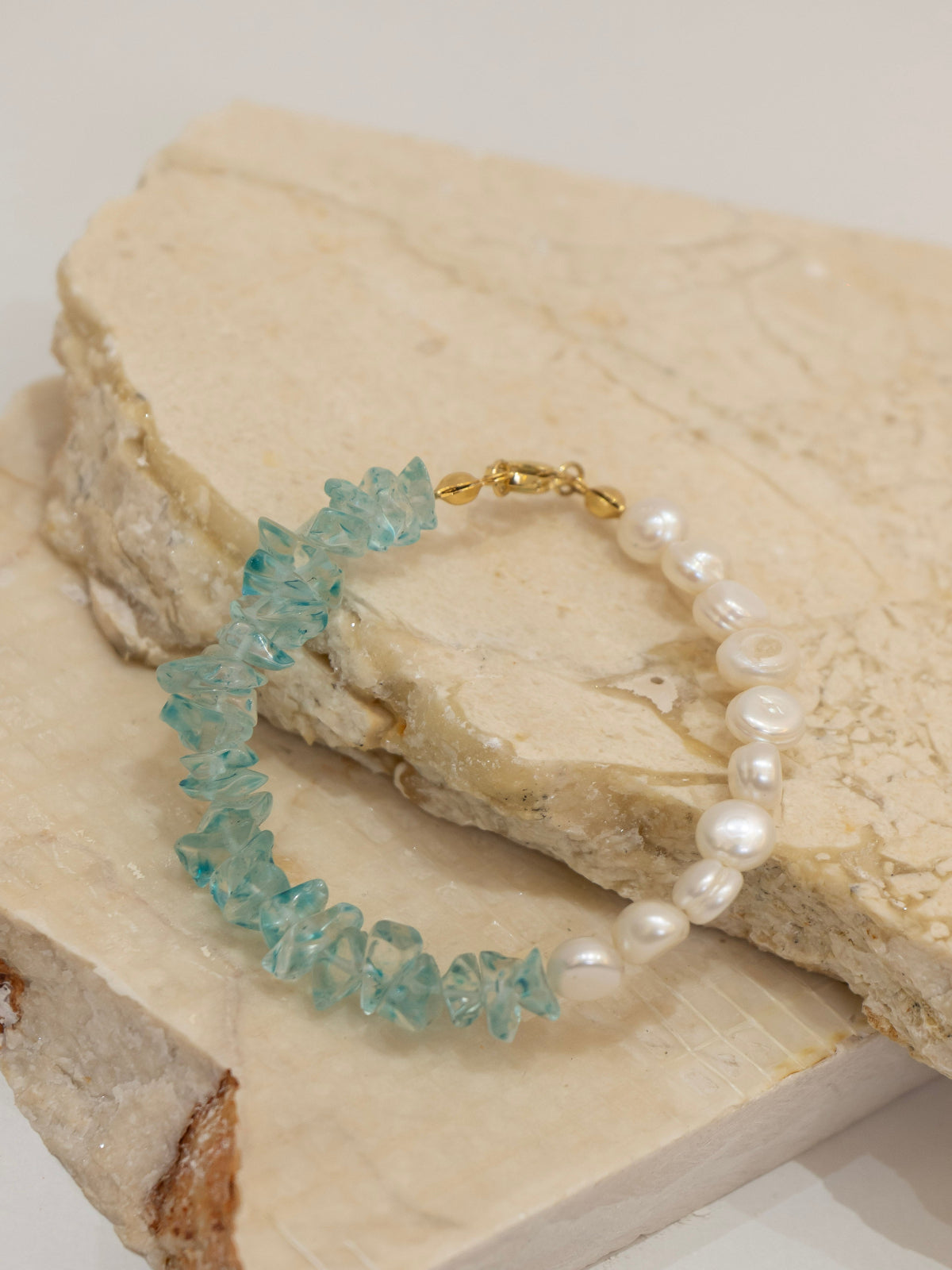 Material: piedra picada / perla de rio.